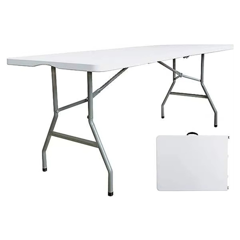 Venta al por mayor portátil 6 pies y 8 pies mesas plegables de plástico blanco para eventos al aire libre plegable Silla de comedor mesa para barbacoa Picnics Camping